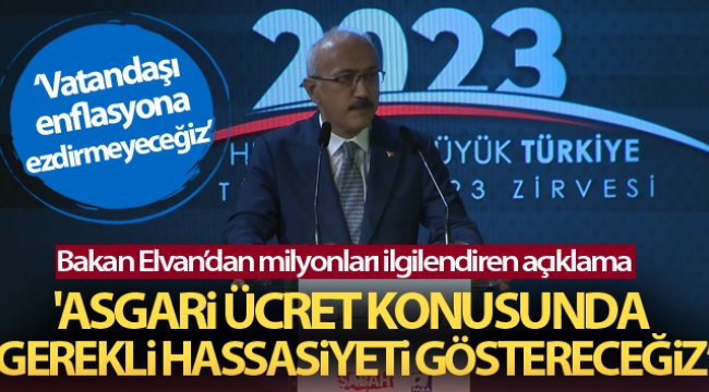 Asgari ücret konusuna dikkat çeken Bakan Elvan, ''Cumhurba?kan? Recep Tayyip Erdo?an'?n en hassas oldu?u hususlardan bir tanesi de vatanda?lar?m?z?n enflasyona ezdirilmemesidir. ?lgili bakanl?klar?m?zla güçlü bir i? birli?i içinde çal???yoruz. Asgari ücret ba?ta olmak üzere bu konuda gerekli hassasiyeti gösterece?iz'' aç?klamas?nda bulundu.
