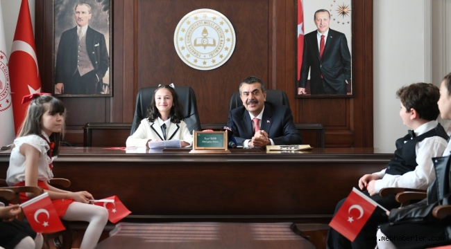Millî E?itim Bakan? Yusuf Tekin, 23 Nisan Ulusal Egemenlik ve Çocuk Bayram? dolay?s?yla koltu?unu temsili olarak Gölba?? ?nönü Ortaokulu ö?rencisi 11 ya??ndaki Irmak Genç'e devretti.