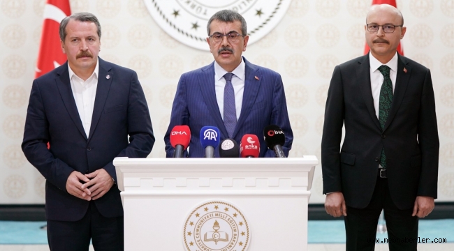 Millî E?itim Bakan? Yusuf Tekin, e?itimcilere yönelik sald?r?lara ili?kin 4 e?itim sendikas?n?n ba?kanlar?yla görü?erek bas?n aç?klamas? düzenledi.