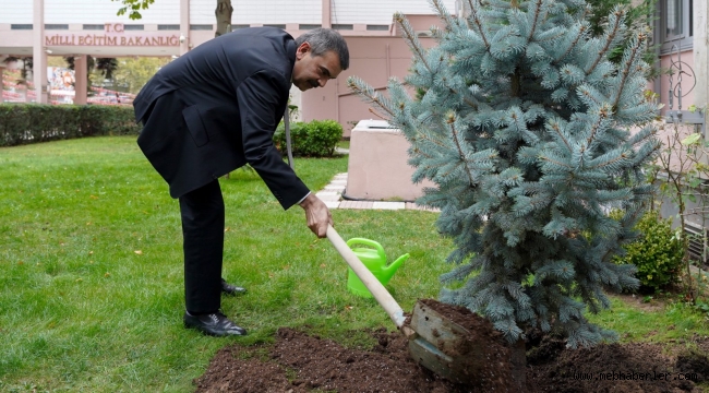 Millî E?itim Bakan? Yusuf Tekin, 11 Kas?m Millî A?açland?rma Günü dolay?s?yla Bakanl???n bahçesine fidan dikti.