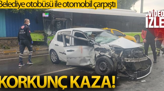 Belediye otobüsü ile otomobil çarp??t?, kad?n sürücü hayat?n? kaybetti