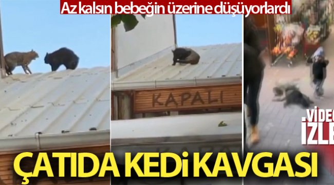 Çat?da kavga eden kediler bebe?in üzerine dü?üyordu