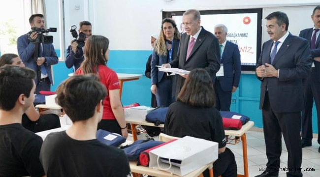 Ö?rencileri tebrik eden Cumhurba?kan? Erdo?an, ö?rencilere çe?itli hediyeler vererek iyi tatiller diledi.