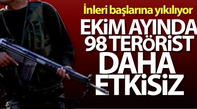?çi?leri Bakan Yard?mc?s? ?smail Çatakl?, "Ekim ay?nda toplam 98 terörist etkisiz hale getirilmi?tir. Etkisiz hale getirilen bu teröristlerin 71’i PKK/KCK, 27’si DEA? mensubudur. Bunlardan 1’inin mavi kategoride, 1’inin turuncu kategoride, 3’ünün gri kategoride oldu?u tespit edilmi?tir" dedi.