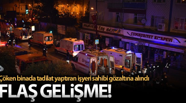 Enkazdan hafif yaral? olarak ç?kar?lan i?yeri i?letmecisi H.D.'nin hastanedeki tedavisinin ard?ndan gözalt?na al?nd??? ve ifadesi al?nmak üzere polis merkezine götürüldü?ü ö?renildi.