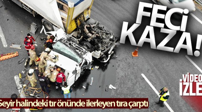 Sancaktepe Kuzey Marmara Otoyolu’nda seyir halindeki t?r önünde ilerleyen t?ra çarpt?. T?r?n kupas? parçalanarak yola dü?erken, s?k??arak yaralanan sürücüyü itfaiye ekipleri kurtard?. Kaza alan? drone ile havadan görüntülendi.