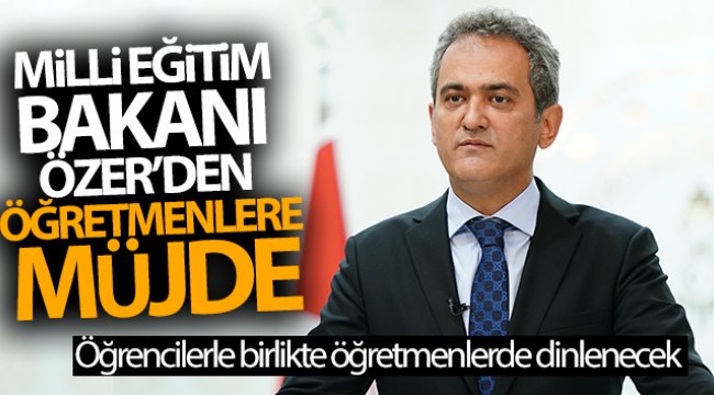 2021-2022 e?itim ö?retim y?l?ndaki 15 ve 19 kas?m tarihleri aras?nda 1 haftal?k tatil olaca??n? yenileyen Bakan Özer, “Ö?rencilerimiz bu 1 hafta içerisinde aileleriyle birlikte dinlenecekler. 10 haftal?k e?itimden sonra bir haftal?k bir dinlenme molas? verecekler. Bilindi?i gibi ara tatillerde ö?retmenlerimizin mesleki geli?im e?itimleri var. Bu 15-19 Kas?m tarihleri aras?nda ö?retmenlerimize mesleki geli?im e?itimitini uzaktan sa?layaca??z. Dolay?s?yla ö?retmenlerimiz de bu tarihler aras?nda okula gelmeyecekler. ?dari izinli olarak say?lacaklar. Bunun müjdesini de buradan vermek isterim. Ö?retmenlerimiz de bu süreçte çok yoruldular. Onlarda 1 hafta dinlenmi? olacaklar” dedi.