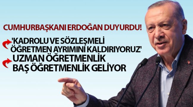 Cumhurba?kan? Recep Tayyip Erdo?an, sözle?meli ö?retmen ve kadrolu ö?retmen aras?ndaki ayr?m?n ortadan kald?r?laca??n? belirterek, ”Ö?retmenlikte 10 y?l?n? doldurmu? ö?retmenlerimize uzman ö?retmenlik imkan?n? getiriyoruz. E?itimlerini tamamlayan ve yap?lan s?navdan ba?ar?yla geçen uzman ö?retmenlerimiz hem 1 derece alacaklar hem de maa?lar?nda bin lira art?? olacakt?r. '' dedi.