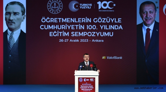 Sempozyumun aç?l???nda bir konu?ma yapan Millî E?itim Bakan? Yusuf Tekin, cumhuriyetin 100. y?l?yla ilgili planlama yaparken en temel konuma konulan ba?l?klardan birinin yüzy?l?n birikimini, gelecek yüzy?l? in?a edecek ö?retmenlerle birlikte de?erlendirmek ve ona göre planlamak oldu?unu söyledi.