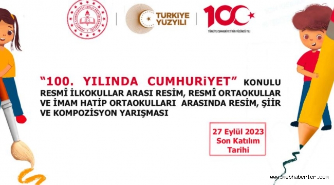 Millî E?itim Bakanl??? taraf?ndan cumhuriyetin 100. y?l? dolay?s?yla yap?lacak etkinlikler kapsam?nda Cumhuriyet de?erlerine sahip ç?karak inanc?, tarihi, kültürü, ailesi, milleti ve bütün insanl??a kar?? görevlerini bilen bir gençli?in yeti?mesine katk?da bulunmak amac?yla "100. Y?l?nda Cumhuriyet" konulu resim, ?iir ve kompozisyon yar??mas? düzenlenecek.