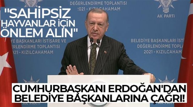 Belediye ba?kanlar?na sokak hayvanlar? konusunda ça?r? yapan Cumhurba?kan? Erdo?an, "Sahipsiz hayvanlar?n?n yerinin sokaklar de?il bar?naklar oldu?unu unutmamal?y?z. Sahipsiz hayvanlar için lütfen önlem al?n, s?cak bar?naklar kurarak pek çok gönül kazanabiliriz, kazanabilirsiniz" dedi.