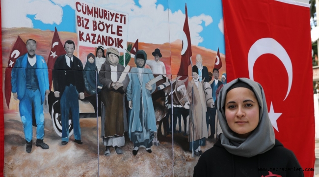 Di?er bir ö?renci Edanur Akçara da Cumhuriyet'in 100. y?l? için özel bir çal??ma yapmak istediklerini dile getirerek, "Ö?retmenlerimizle resimler çizdik. Bu resimleri çizerken Cumhuriyet için neler yap?ld???n? anlad?k. Türk insan?n?n en sevdi?im yönü; birlik olabilmemizdir. Varl?klar?yla yokluklar?yla hastas?, genci, ya?l?s?; herkes birlik olup 100 önce bu topraklara sahip olduk." dedi.