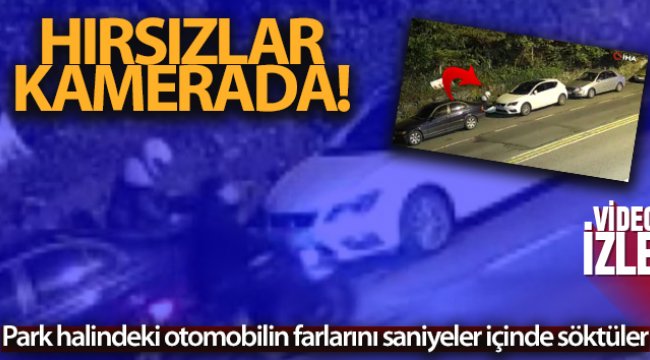 Otomobilin önünde durup çevreye bak?nan h?rs?zlar, bir arac?n geldi?ini fark edince olay yerinden uzakla??yor. Araç gittikten sonra geri dönen h?rs?zlardan biri motosikletten inerek otomobilin farlar?n? söküyor. Farlar? alan h?rs?zlar motosiklete binerek kaç?yor.