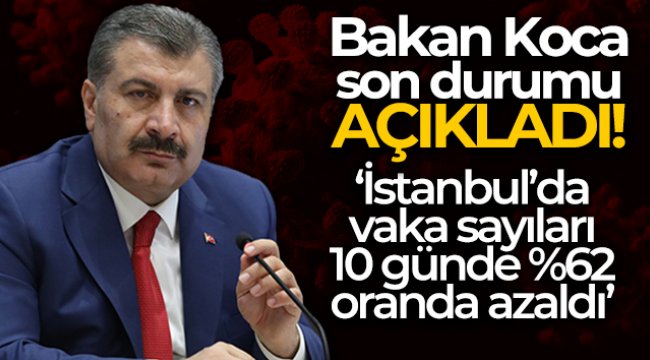 Sa?l?k Bakan? Fahrettin Koca, sosyal payla??m sitesi Twitter hesab?ndan yapt??? payla??mda, “Hastaneye yat??larda 1 haftada yüzde 28 oran?nda dü?ü? ya?and?. ?stanbul'da vaka say?lar? 10 günde yüzde 62 oran?nda azald?. Di?er illerde de durum benzer seyirde. Vaka say?lar?nda geçti?imiz hafta ba??ndan itibaren gözlenen dü?ü?, gelecek iki hafta içinde çok daha önemli hale gelecek” dedi.