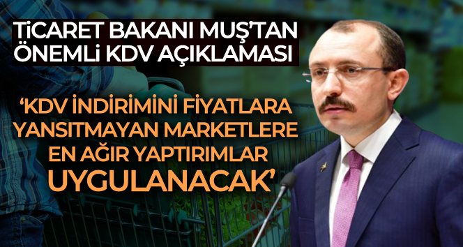 Ticaret Bakan? Mehmet Mu?, "Yapaca??m?z denetimler neticesinde KDV indirimini fiyatlara yans?tmayan ve haks?z fiyat art??lar?yla vatanda?lar?m?z? ma?dur eden marketlere en a??r yapt?r?mlar? uygulayaca??m?zdan kamuoyunun hiçbir ?üphesi olmas?n" dedi.