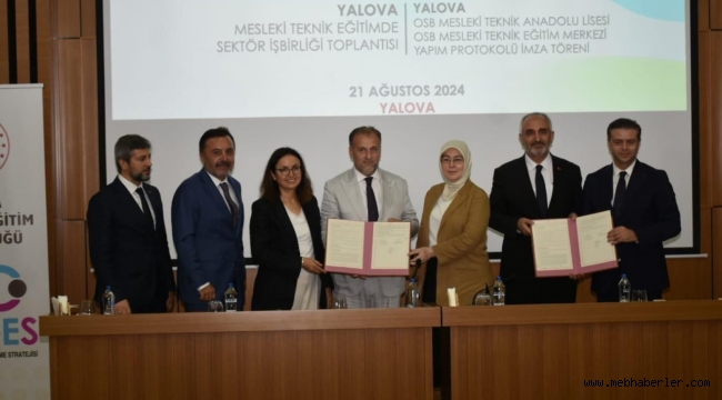 Toplant?da, Yalova Millî E?itim Müdürlü?ü ile Yalova Makine ?htisas OSB aras?nda düzenlenen 16 derslikli mesleki e?itim merkezi ve 16 derslikli mesleki teknik Anadolu lisesi yap?m protokolü imzaland?.