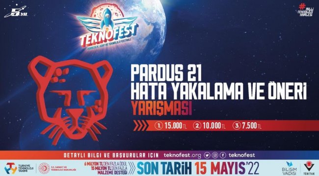 Yar??maya 15 May?s 2022’yekadar ba?vurular?n al?nmas?n?n ard?ndan yar??mac?lar 03 Haziran tarihine kadar hata ve önerilerin al?nma sürecine kat?lacak. 06-24 Haziran tarihlerinde de?erlendirme sürecinin yap?laca?? yar??man?n kazananlar? ise 30 A?ustos-04 Eylül tarihlerinde Samsun’da gerçekle?ecek TEKNOFEST 2022 Karadeniz’de ödüllerini alacak. Birinciye 15.000 TL, ikinciye 10.000 TL, üçüncüye ise 7.500 TL ödülün verilece?i Pardus 21.2’ye kat?lmak için teknofest.org adresini ziyaret edebilirsiniz.